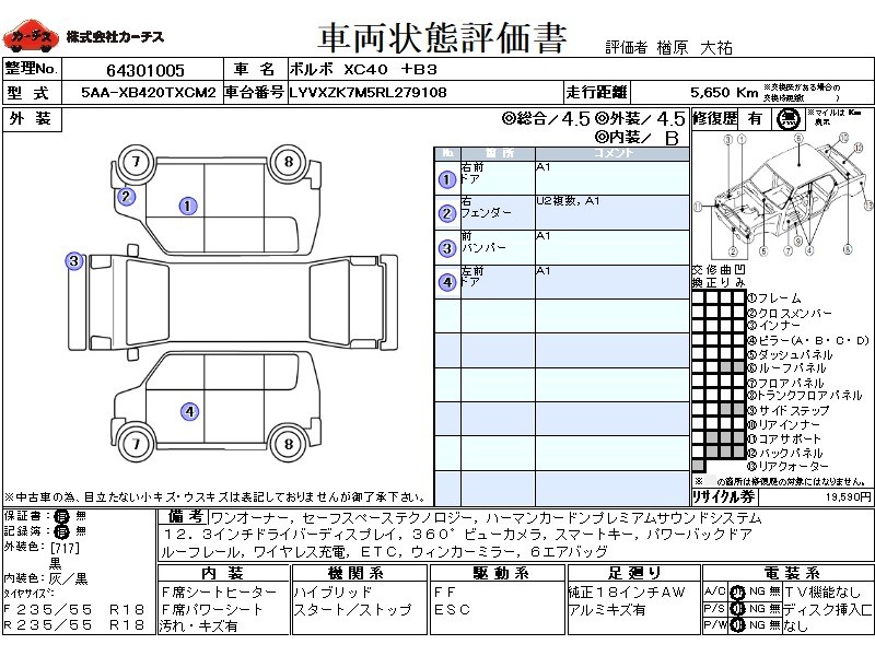 5ニン,AC/オート,PS,PW,SRS,PSSRS,SSRS,ABS,TRC,クルース゛C,Bカメラ/フロント,ETC,18AW,スマートキー,ウィンカーミラー,Pハ゛ックD,ルーフレール,Rスホ゜