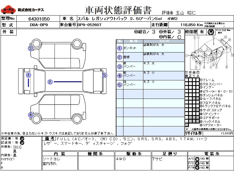 | 外装評価 | 3 |
