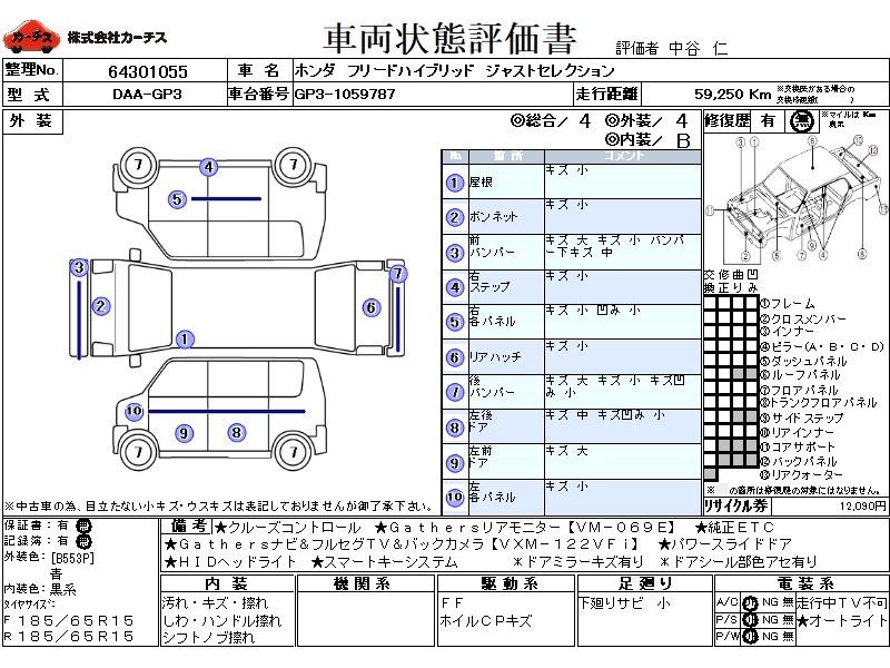 フル装備 / CD / 乗車定員(6人) / 集中ドアロック / エアバッグ / 助手席エアバッグ / ABS / トラクションコントロール / クルーズコントロール / カーナビゲーション(インダッシュ,SSD,2DIN) / 地デジTV / バックカメラ / ETC / スマートキー / ディスチャージ / ウインカーミラー / ハイマウントストップランプ / パワースライドドア / サイドスポイラー / リアスポイラー /