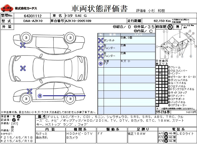| 外装評価 | 3.5 |