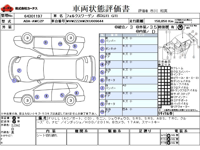 フル装備 / CD / 乗車定員(5人) / 集中ドアロック / エアバッグ / 助手席エアバッグ / ABS / トラクションコントロール / クルーズコントロール / カーナビゲーション(インダッシュ,HDD,2DIN) / バックカメラ / アルミホイール(17インチ) / スマートキー /