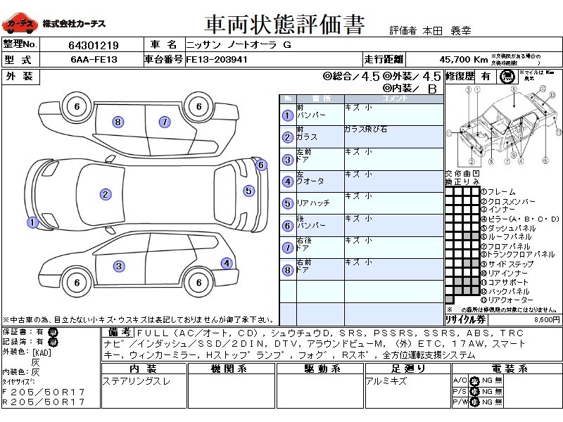 フル装備 / CD / 集中ドアロック / エアバッグ / 助手席エアバッグ / サイドエアバッグ / ABS / トラクションコントロール / カーナビゲーション(インダッシュ,SSD,2DIN) / 地デジTV / バックカメラ(フロント) / ETC(社外) / アルミホイール(17インチ) / スマートキー / ウインカーミラー / ハイマウントストップランプ / フォグランプ / リアスポイラー /