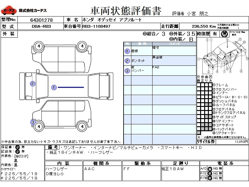 ・ワンオーナー ・インターナビ/マルチユーカメラ ・スマートキー ・純正18インチAW ・HID