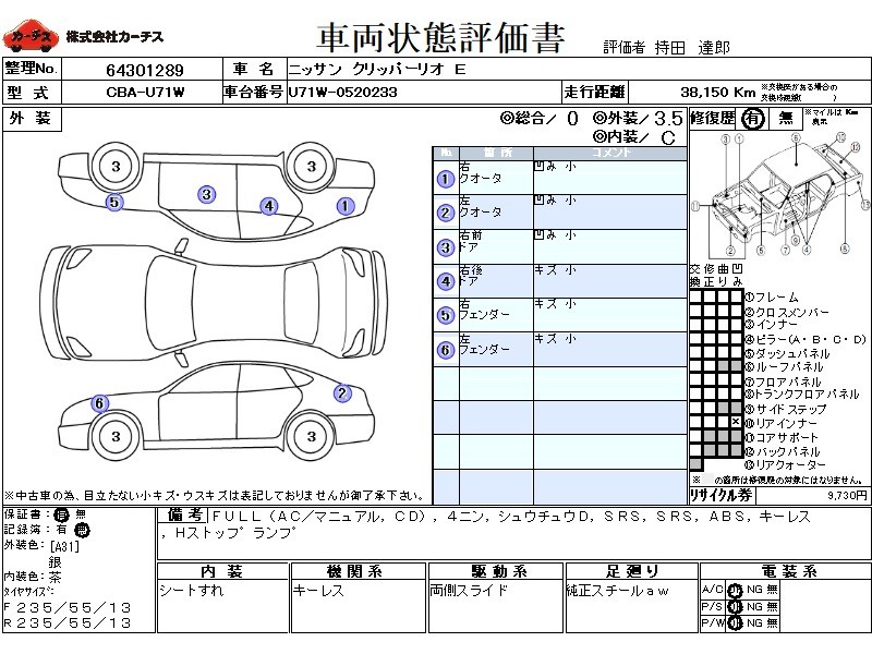 | 法定点検整備 | あり 契約後、納車までに実施 |