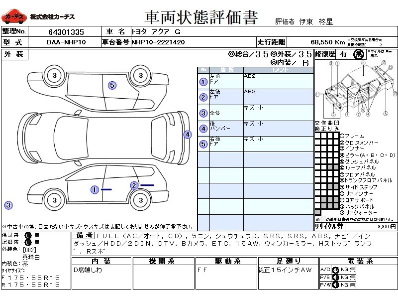 フル装備 / CD / 乗車定員(5人) / 集中ドアロック / エアバッグ / 助手席エアバッグ / ABS / カーナビゲーション(インダッシュ,HDD,2DIN) / 地デジTV / バックカメラ / ETC / アルミホイール(15インチ) / ウインカーミラー / ハイマウントストップランプ / リアスポイラー /
