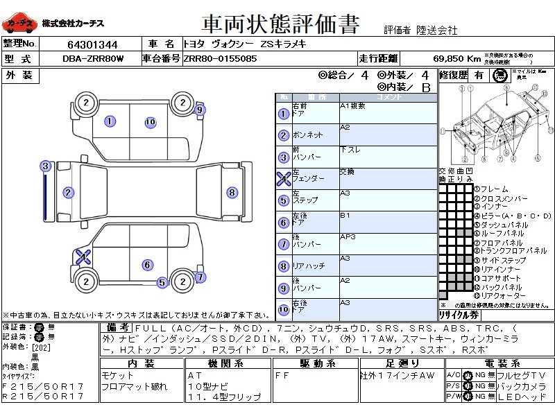 フル装備 / CD(社外) / 乗車定員(7人) / 集中ドアロック / エアバッグ / 助手席エアバッグ / ABS / トラクションコントロール / カーナビゲーション(社外)(インダッシュ,SSD,2DIN) / テレビ(社外) / 地デジTV(社外) / ETC(社外) / アルミホイール(社外)(17インチ) / スマートキー / ウインカーミラー / ハイマウントストップランプ / パワースライドドア / フォグランプ / サイドスポイラー / リアスポイラー /