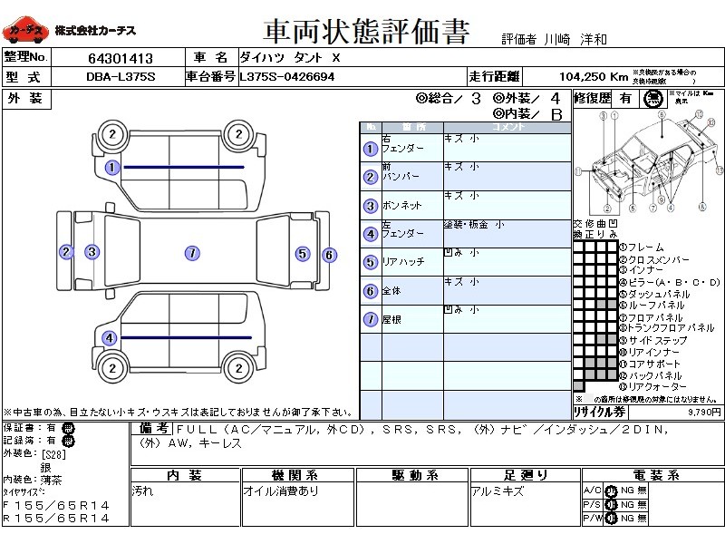 FULL(AC/マニュアル,外CD),SRS,PSSRS,(外)ナヒ゛/インダッシュ/2DIN,(外)DTV,(外)ETC,(外)AW,キーレス