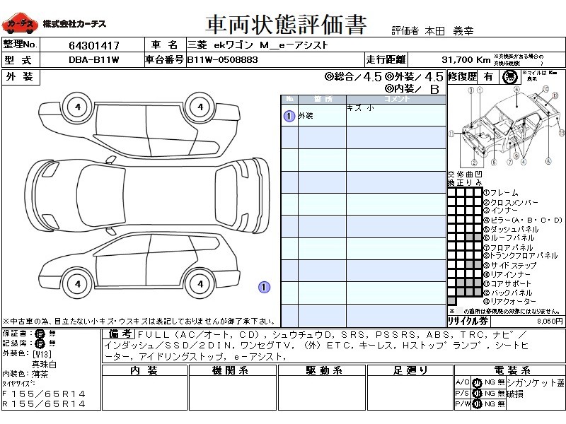 | 外装評価 | 4.5 |