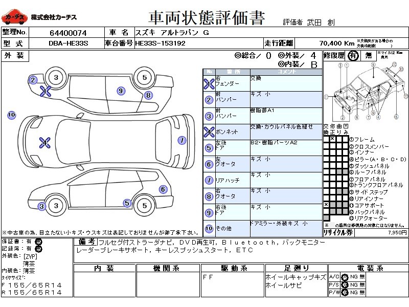 フル装備 / CD(社外) / 乗車定員(4人) / エアバッグ / 助手席エアバッグ / ABS / トラクションコントロール / カーナビゲーション(社外)(HDD) / テレビ(社外) / 地デジTV(社外) / ETC(社外) / スマートキー / ハイマウントストップランプ /