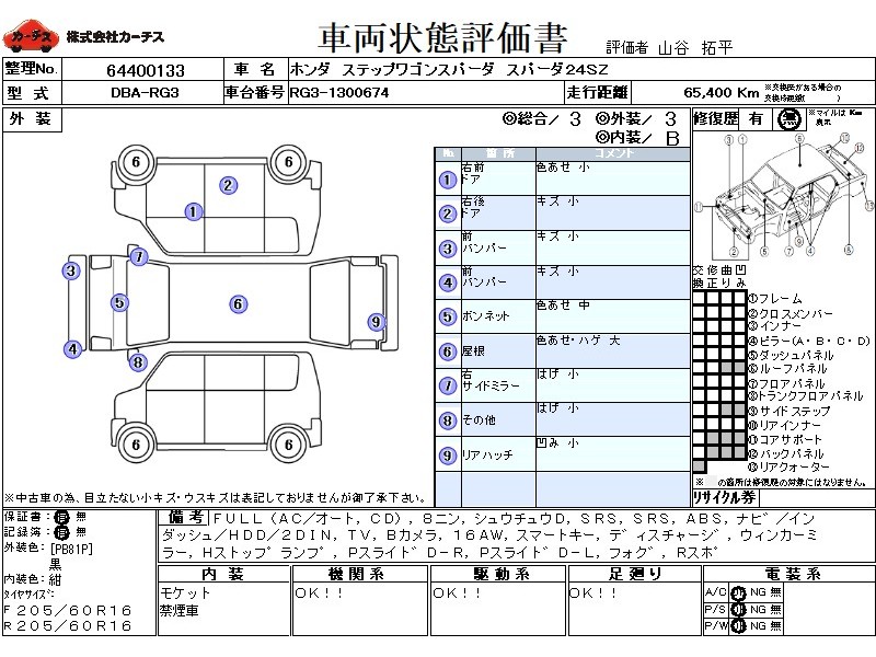 フル装備 / CD / 乗車定員(8人) / 集中ドアロック / エアバッグ / 助手席エアバッグ / ABS / カーナビゲーション(インダッシュ,HDD,2DIN) / テレビ(アナログ) / バックカメラ / ETC(社外) / アルミホイール(16インチ) / スマートキー / ディスチャージ / ウインカーミラー / ハイマウントストップランプ / パワースライドドア / フォグランプ / リアスポイラー /