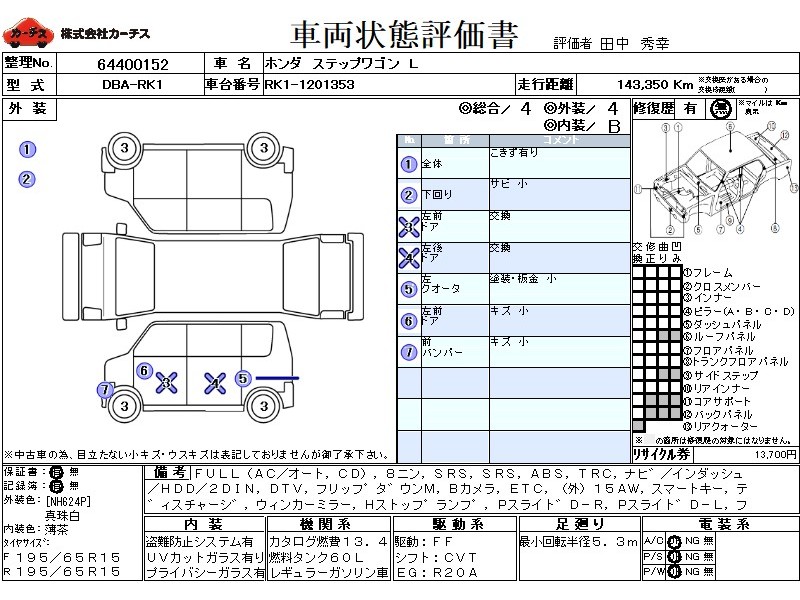 フル装備 / CD / 乗車定員(8人) / エアバッグ / 助手席エアバッグ / ABS / トラクションコントロール / カーナビゲーション(インダッシュ,HDD,2DIN) / 地デジTV / フリップダウンモニタ / バックカメラ / ETC / アルミホイール(社外)(15インチ) / スマートキー / ディスチャージ / ウインカーミラー / ハイマウントストップランプ / パワースライドドア / フォグランプ / リアスポイラー /