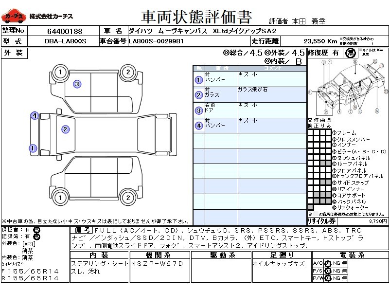 フル装備 / CD / 集中ドアロック / エアバッグ / 助手席エアバッグ / サイドエアバッグ / ABS / トラクションコントロール / カーナビゲーション(インダッシュ,SSD,2DIN) / 地デジTV / バックカメラ / ETC(社外) / スマートキー / ハイマウントストップランプ / パワースライドドア / フォグランプ /