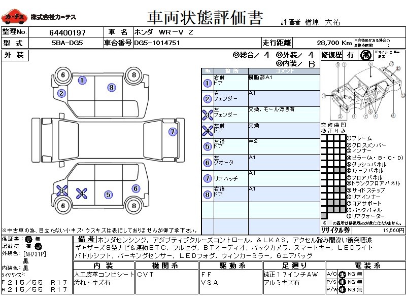 エアコン(オート) / パワーステアリング / パワーウィンドウ / エアバッグ / 助手席エアバッグ / サイドエアバッグ / ABS / トラクションコントロール / クルーズコントロール / カーナビゲーション(オンダッシュ) / 地デジTV / バックカメラ / ETC / アルミホイール(17インチ) / スマートキー / ウインカーミラー / フォグランプ / リアスポイラー /