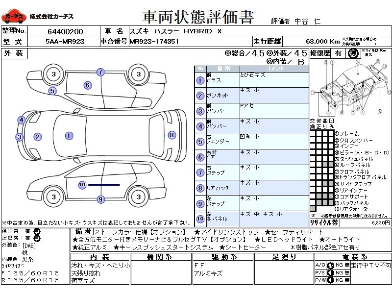 フル装備 / CD / 乗車定員(4人) / 集中ドアロック / エアバッグ / 助手席エアバッグ / サイドエアバッグ / ABS / トラクションコントロール / カーナビゲーション(インダッシュ,SSD,2DIN) / 地デジTV / バックカメラ(フロント) / アルミホイール(15インチ) / スマートキー / ウインカーミラー / ハイマウントストップランプ / フォグランプ /
