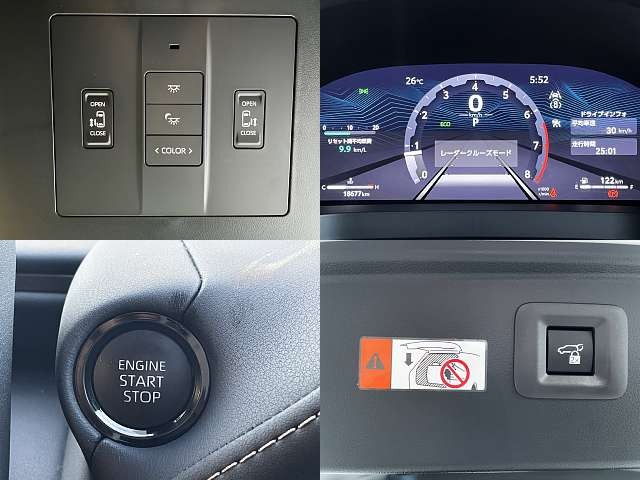 乗車定員(7人) / エアコン(オート) / パワーステアリング / パワーウィンドウ / エアバッグ / 助手席エアバッグ / サイドエアバッグ / ABS / トラクションコントロール / クルーズコントロール / カーナビゲーション(インダッシュ,SSD) / テレビ(アナログ) / 地デジTV / バックカメラ(サイドカメラ) / ETC / アルミホイール(18インチ) / 革シート(黒) / スマートキー / パワースライドドア / パワーバックドア / フォグランプ / フロントスポイラー / サイドスポイラー / リアスポイラー / リアアンダースポイラー /