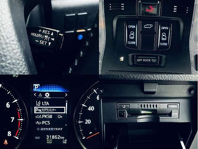乗車定員(7人) / エアコン(Wエアコン・オート) / パワーステアリング / パワーウィンドウ / エアバッグ / 助手席エアバッグ / サイドエアバッグ / ABS / クルーズコントロール / テレビ(アナログ) / 地デジTV / バックカメラ / ETC / アルミホイール(18インチ) / スマートキー / ウインカーミラー / ハイマウントストップランプ / パワースライドドア / パワーバックドア / フォグランプ / リアスポイラー /