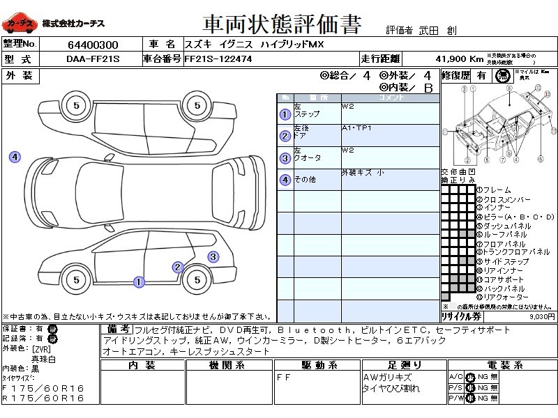 フル装備 / CD / 乗車定員(5人) / エアバッグ / 助手席エアバッグ / サイドエアバッグ / ABS / トラクションコントロール / カーナビゲーション(SSD) / テレビ(アナログ) / 地デジTV / ETC / アルミホイール(16インチ) / スマートキー / ウインカーミラー / ハイマウントストップランプ /