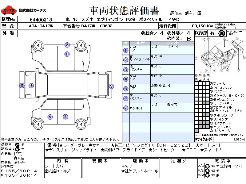 フル装備 / CD / 乗車定員(4人) / エアバッグ / 助手席エアバッグ / ABS / トラクションコントロール / カーナビゲーション(インダッシュ,SSD,2DIN) / テレビ(アナログ) / ETC(社外) / アルミホイール(社外)(14インチ) / スマートキー / ディスチャージ / ウインカーミラー / ハイマウントストップランプ / パワースライドドア / フォグランプ / サイドスポイラー / リアスポイラー /