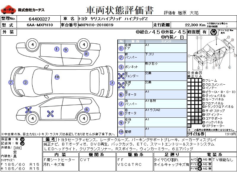 フル装備 / CD / エアバッグ / 助手席エアバッグ / サイドエアバッグ / ABS / トラクションコントロール / クルーズコントロール / カーナビゲーション(オンダッシュ) / バックカメラ / ETC / スマートキー / ウインカーミラー / リアスポイラー /