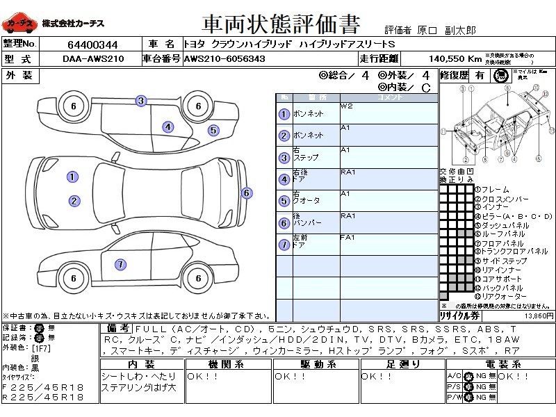 フル装備 / CD / 乗車定員(5人) / 集中ドアロック / エアバッグ / 助手席エアバッグ / サイドエアバッグ / ABS / トラクションコントロール / クルーズコントロール / カーナビゲーション(インダッシュ,HDD,2DIN) / テレビ(アナログ) / 地デジTV / バックカメラ / ETC / アルミホイール(18インチ) / スマートキー / ディスチャージ / ウインカーミラー / ハイマウントストップランプ / フォグランプ / サイドスポイラー / リアアンダースポイラー /