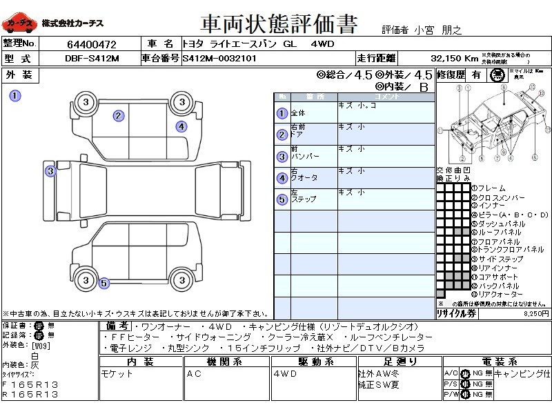 ・キャンピング(リゾートデュオルクシオ)・4WD・ワンオーナー・FFヒーター・サイドウォーニング・ルーフベンチレーター・15型フリップ・7型ナビ/DTⅤ/Bカメラ・クーラー冷え蔵X・インバーター・サブバッテリー
