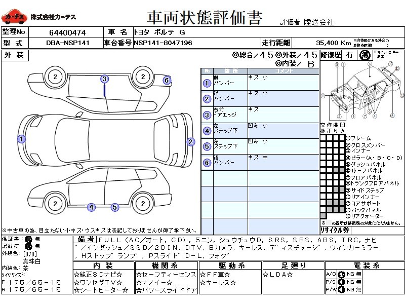 フル装備 / CD / 乗車定員(5人) / 集中ドアロック / エアバッグ / 助手席エアバッグ / ABS / トラクションコントロール / カーナビゲーション(インダッシュ,SSD,2DIN) / 地デジTV / バックカメラ / キーレスエントリー / ディスチャージ / ウインカーミラー / ハイマウントストップランプ / パワースライドドア / フォグランプ /