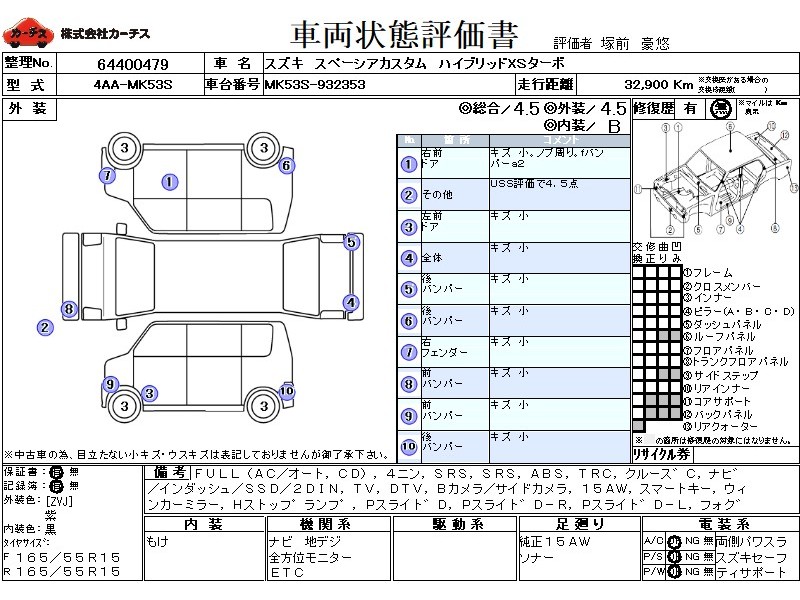 フル装備 / CD / 乗車定員(4人) / エアバッグ / 助手席エアバッグ / ABS / トラクションコントロール / クルーズコントロール / カーナビゲーション(インダッシュ,SSD,2DIN) / テレビ(アナログ) / 地デジTV / バックカメラ(サイドカメラ) / ETC(社外) / アルミホイール(15インチ) / スマートキー / ウインカーミラー / ハイマウントストップランプ / パワースライドドア / フォグランプ / サイドスポイラー / リアスポイラー /