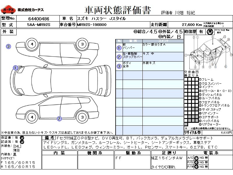 フル装備 / CD / 乗車定員(4人) / エアバッグ / 助手席エアバッグ / サイドエアバッグ / ABS / クルーズコントロール / カーナビゲーション(SSD) / テレビ(アナログ) / 地デジTV / バックカメラ / ETC(社外) / アルミホイール(15インチ) / スマートキー / ウインカーミラー / ハイマウントストップランプ / フォグランプ / ルーフレール /