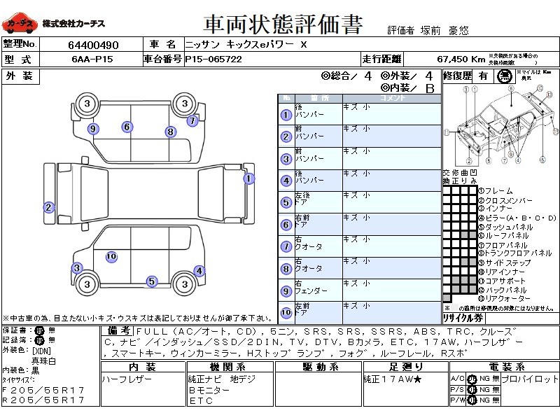 フル装備 / CD / 乗車定員(5人) / エアバッグ / 助手席エアバッグ / サイドエアバッグ / ABS / トラクションコントロール / クルーズコントロール / カーナビゲーション(インダッシュ,SSD,2DIN) / テレビ(アナログ) / 地デジTV / バックカメラ / ETC / アルミホイール(17インチ) / ハーフレザーシート / スマートキー / ウインカーミラー / ハイマウントストップランプ / フォグランプ / ルーフレール / リアスポイラー /