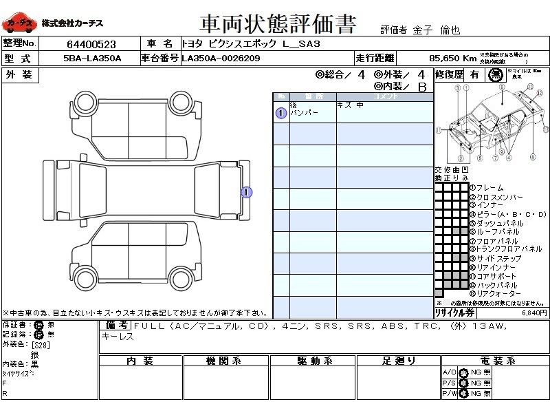 | 外装評価 | 4 |