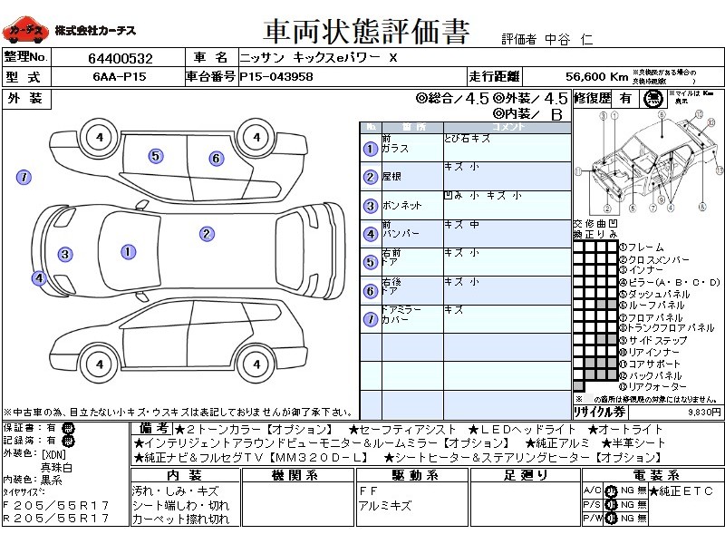 フル装備 / CD / 乗車定員(5人) / 集中ドアロック / エアバッグ / 助手席エアバッグ / サイドエアバッグ / ABS / トラクションコントロール / クルーズコントロール / カーナビゲーション(インダッシュ,SSD,2DIN) / 地デジTV / バックカメラ(フロント) / ETC / アルミホイール(17インチ) / ハーフレザーシート / スマートキー / ウインカーミラー / ハイマウントストップランプ / フォグランプ / ルーフレール /