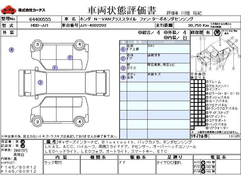 フル装備 / CD / 乗車定員(4人) / エアバッグ / 助手席エアバッグ / ABS / クルーズコントロール / カーナビゲーション(SSD) / バックカメラ / ETC / スマートキー / ハイマウントストップランプ / フォグランプ /