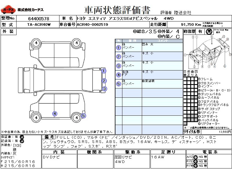 | 外装評価 | 4 |