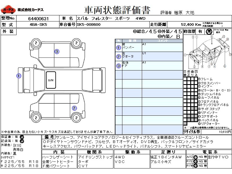 サンルーフ アイサイトコアテクノロジー&セイフティプラス RAB 純正OPダイヤトーンサウンドナビ&連動ETC フルセグTV BTオーディオ DVD再生 バック&フロント/サイドカメラ キーレスアクセス パワーバックドア LEDヘッドライト&LEDフォグパドルシフト SI-DRIVE ハーフレザーシート 全席シートヒーター F席パワーシート スマートリヤビューミラー 禁煙車