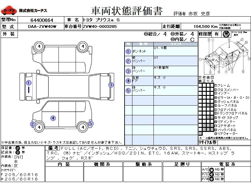 | 外装評価 | 4 |