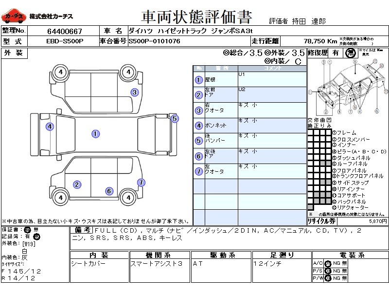 | 外装評価 | 3.5 |