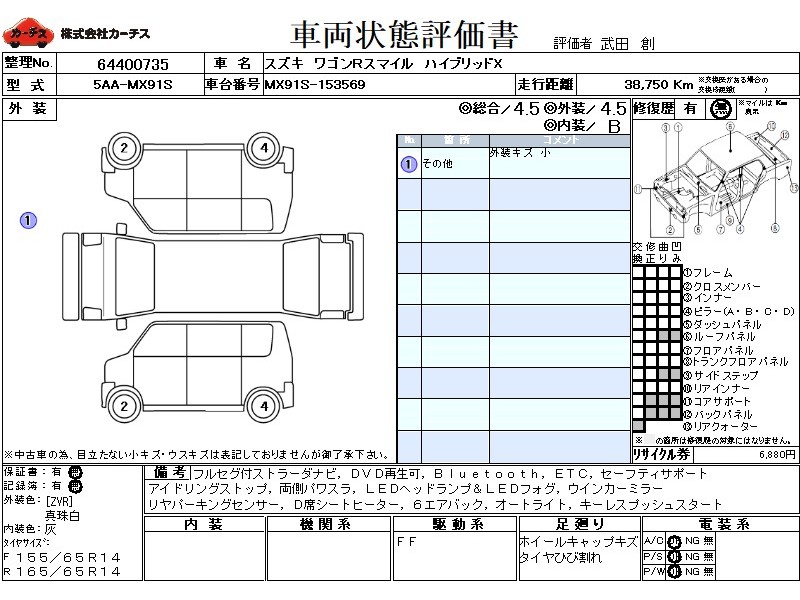 フル装備 / CD(社外) / 乗車定員(4人) / エアバッグ / 助手席エアバッグ / サイドエアバッグ / ABS / トラクションコントロール / カーナビゲーション(社外)(SSD) / テレビ(社外) / 地デジTV(社外) / ETC(社外) / スマートキー / ウインカーミラー / ハイマウントストップランプ / パワースライドドア / フォグランプ /
