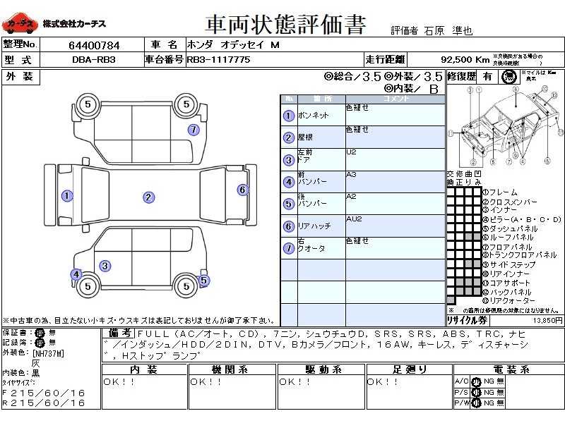 | 外装評価 | 3.5 |