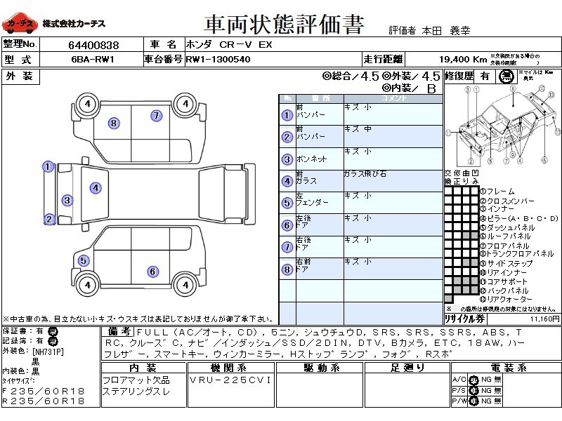 フル装備 / CD / 乗車定員(5人) / 集中ドアロック / エアバッグ / 助手席エアバッグ / サイドエアバッグ / ABS / トラクションコントロール / クルーズコントロール / カーナビゲーション(インダッシュ,SSD,2DIN) / 地デジTV / バックカメラ / ETC / アルミホイール(18インチ) / ハーフレザーシート / スマートキー / ウインカーミラー / ハイマウントストップランプ / フォグランプ / リアスポイラー /