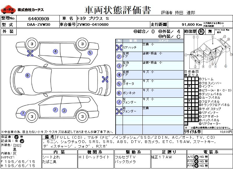 | 外装評価 | 4 |