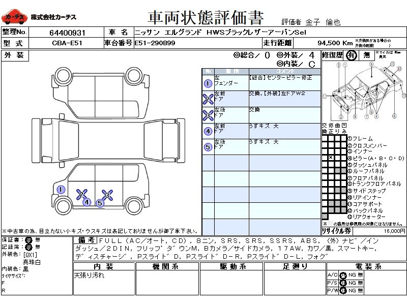 HOME >中古車検索 >日産の中古車 >エルグランドの中古車 > エルグランド HWSブラックレザーアーバンSel