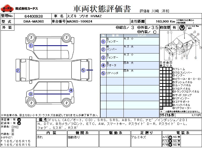 FULL(AC/オート,CD),SRS,PSSRS,ABS,TRC,ナヒ゛/インダッシュ/2DIN,DTV,Bカメラ/フロント,ETC,AW,スマートキー,Pスライト゛D−R,Pスライト゛D−L,フォク゛,Sスホ゜,Rスホ゜