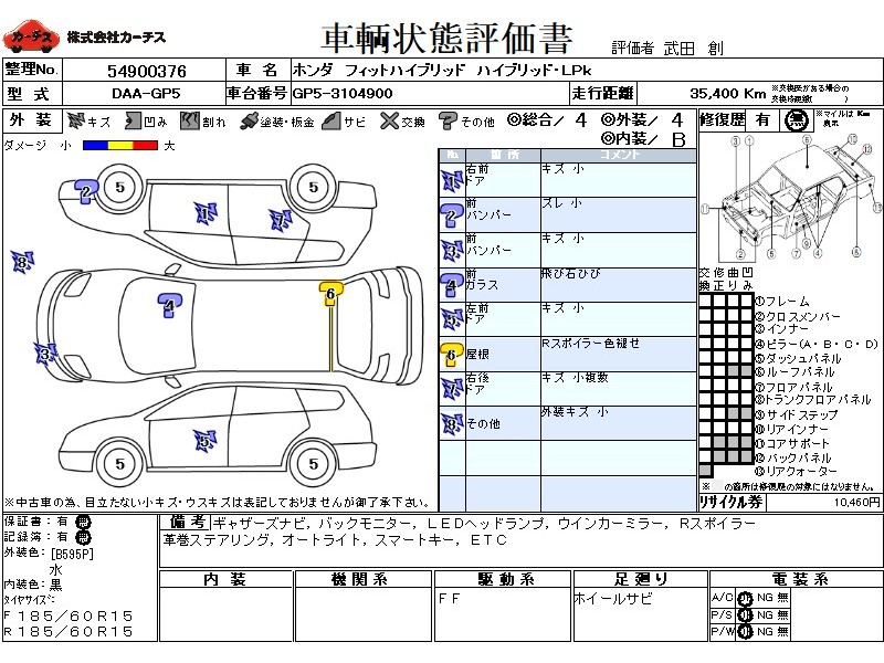 フル装備 / CD / 乗車定員(5人) / エアバッグ / 助手席エアバッグ / ABS / クルーズコントロール / カーナビゲーション(SSD) / バックカメラ / ETC(社外) / スマートキー / ウインカーミラー / ハイマウントストップランプ / リアスポイラー /