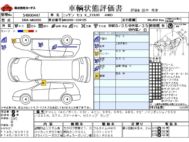 フル装備 / CD / 乗車定員(4人) / エアバッグ / 助手席エアバッグ / ABS / カーナビゲーション(インダッシュ,SSD,2DIN) / 地デジTV / ETC(社外) / スマートキー / ハイマウントストップランプ /