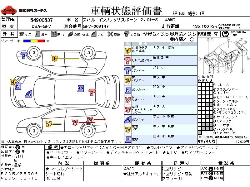 フル装備 / CD(社外) / 乗車定員(5人) / エアバッグ / 助手席エアバッグ / ABS / トラクションコントロール / クルーズコントロール / カーナビゲーション(社外)(インダッシュ,SSD,2DIN) / 地デジTV(社外) / ETC(社外) / アルミホイール(社外)(16インチ) / ハーフレザーシート / キーレスエントリー / ディスチャージ / ウインカーミラー / ハイマウントストップランプ / フォグランプ / リアスポイラー /