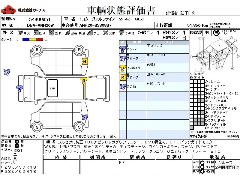 フル装備 / CD / 乗車定員(7人) / エアバッグ / 助手席エアバッグ / サイドエアバッグ / ABS / クルーズコントロール / カーナビゲーション(HDD) / テレビ(アナログ) / 地デジTV / フリップダウンモニタ / バックカメラ / ETC / アルミホイール(18インチ) / ダブルサンルーフ / スマートキー / ディスチャージ / ウインカーミラー / ハイマウントストップランプ / パワースライドドア / パワーバックドア / フォグランプ / サイドスポイラー / リアスポイラー /