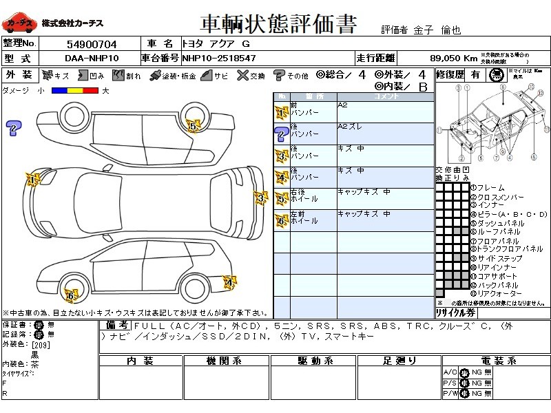 フル装備 / CD(社外) / 乗車定員(5人) / エアバッグ / 助手席エアバッグ / ABS / トラクションコントロール / クルーズコントロール / カーナビゲーション(社外)(インダッシュ,SSD,2DIN) / テレビ(社外) / 地デジTV(社外) / ETC(社外) / スマートキー /