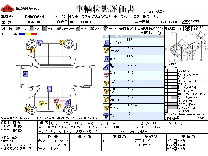 乗車定員(8人) / エアコン(Wエアコン・オート) / パワーステアリング / パワーウィンドウ / 集中ドアロック / CD(社外) / エアバッグ / 助手席エアバッグ / ABS / トラクションコントロール / クルーズコントロール / カーナビゲーション(社外)(インダッシュ,HDD,2DIN) / 地デジTV(社外) / ETC(社外) / アルミホイール(17インチ) / ハーフレザーシート / スマートキー / ディスチャージ / ウインカーミラー / ハイマウントストップランプ / パワースライドドア / フォグランプ / リアスポイラー /