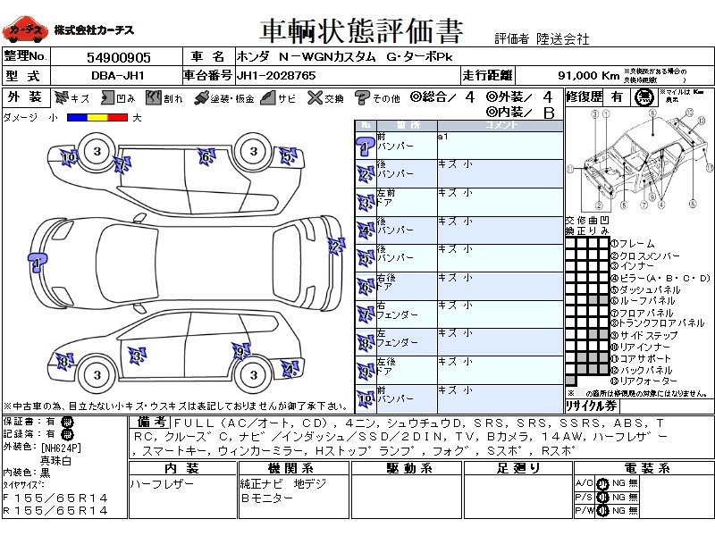 フル装備 / CD / 乗車定員(4人) / 集中ドアロック / エアバッグ / 助手席エアバッグ / サイドエアバッグ / ABS / トラクションコントロール / クルーズコントロール / カーナビゲーション(インダッシュ,SSD,2DIN) / テレビ(アナログ) / バックカメラ / アルミホイール(14インチ) / ハーフレザーシート / スマートキー / ウインカーミラー / ハイマウントストップランプ / フォグランプ / サイドスポイラー / リアスポイラー /
