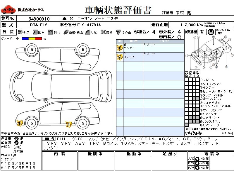 フル装備 / CD / マルチ(ナビ) / エアコン(オート) / テレビ(アナログ) / 乗車定員(5人) / エアバッグ / 助手席エアバッグ / ABS / トラクションコントロール / バックカメラ / ETC(社外) / アルミホイール(16インチ) / スマートキー / フロントスポイラー / サイドスポイラー / リアスポイラー / リアアンダースポイラー /